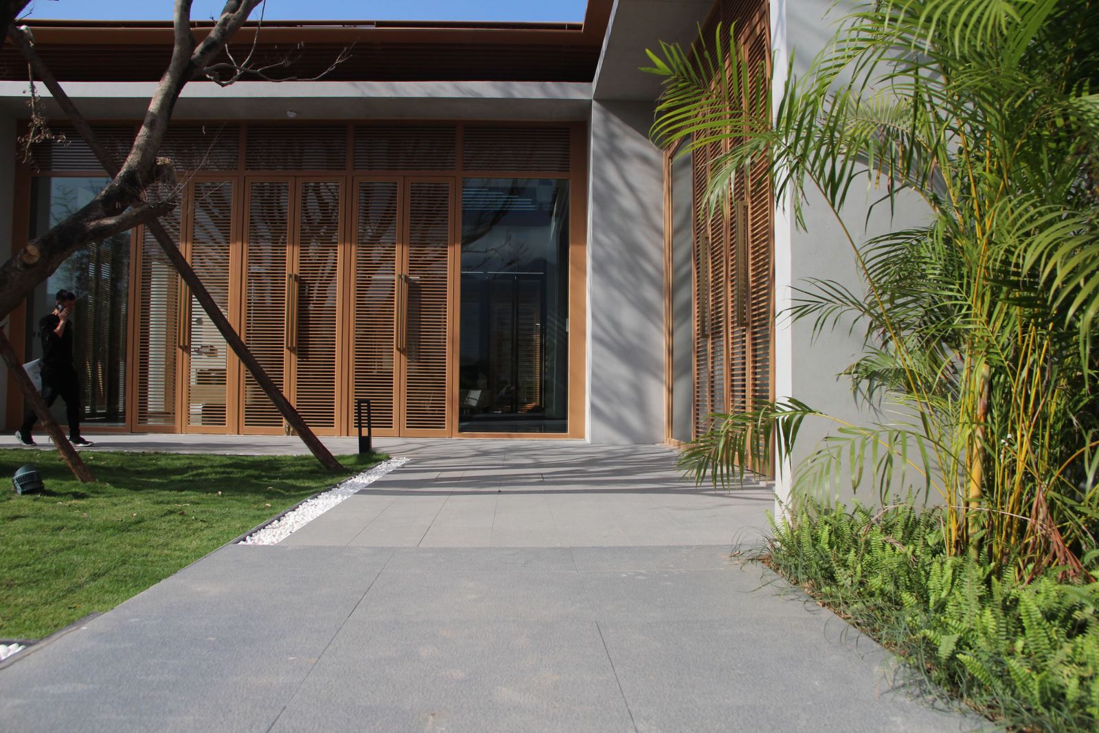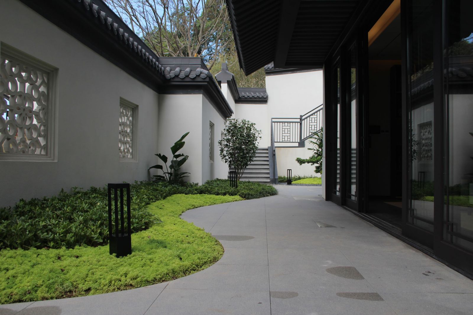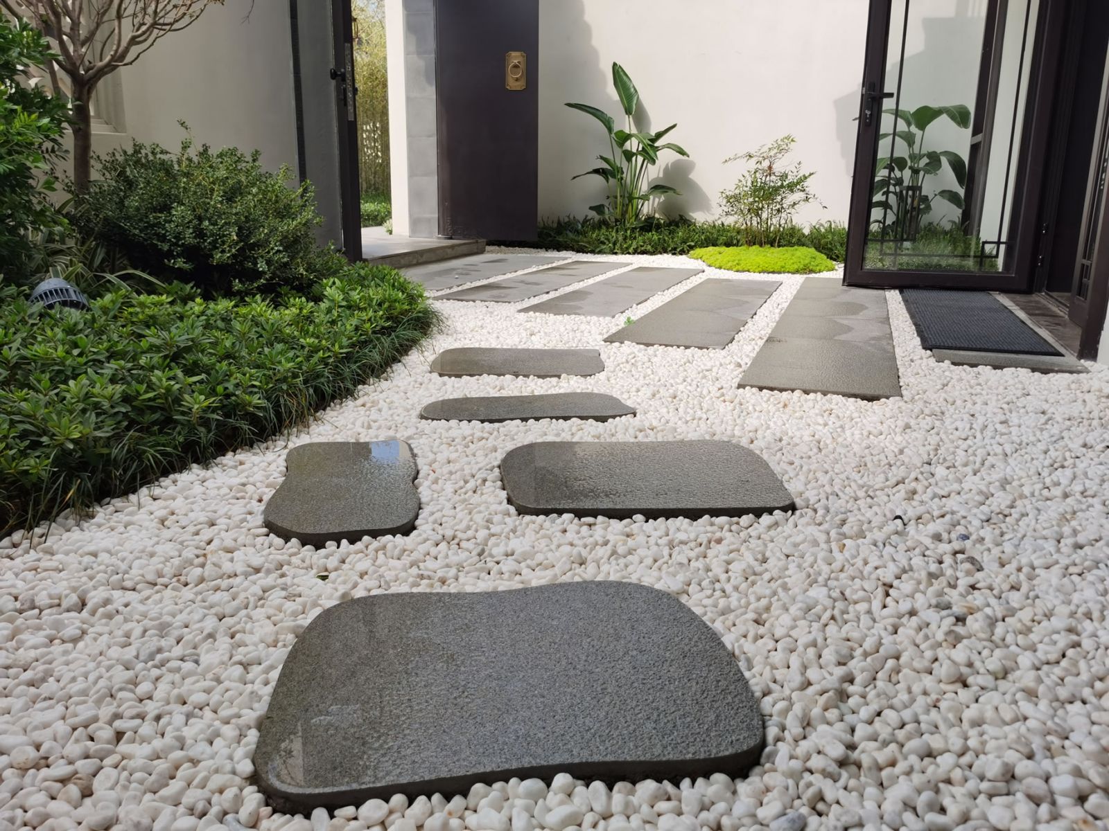 區(qū)域內(nèi)廣場、水景、汀步及別墅庭院采用協(xié)進(jìn)地鋪石瓷磚裝飾,