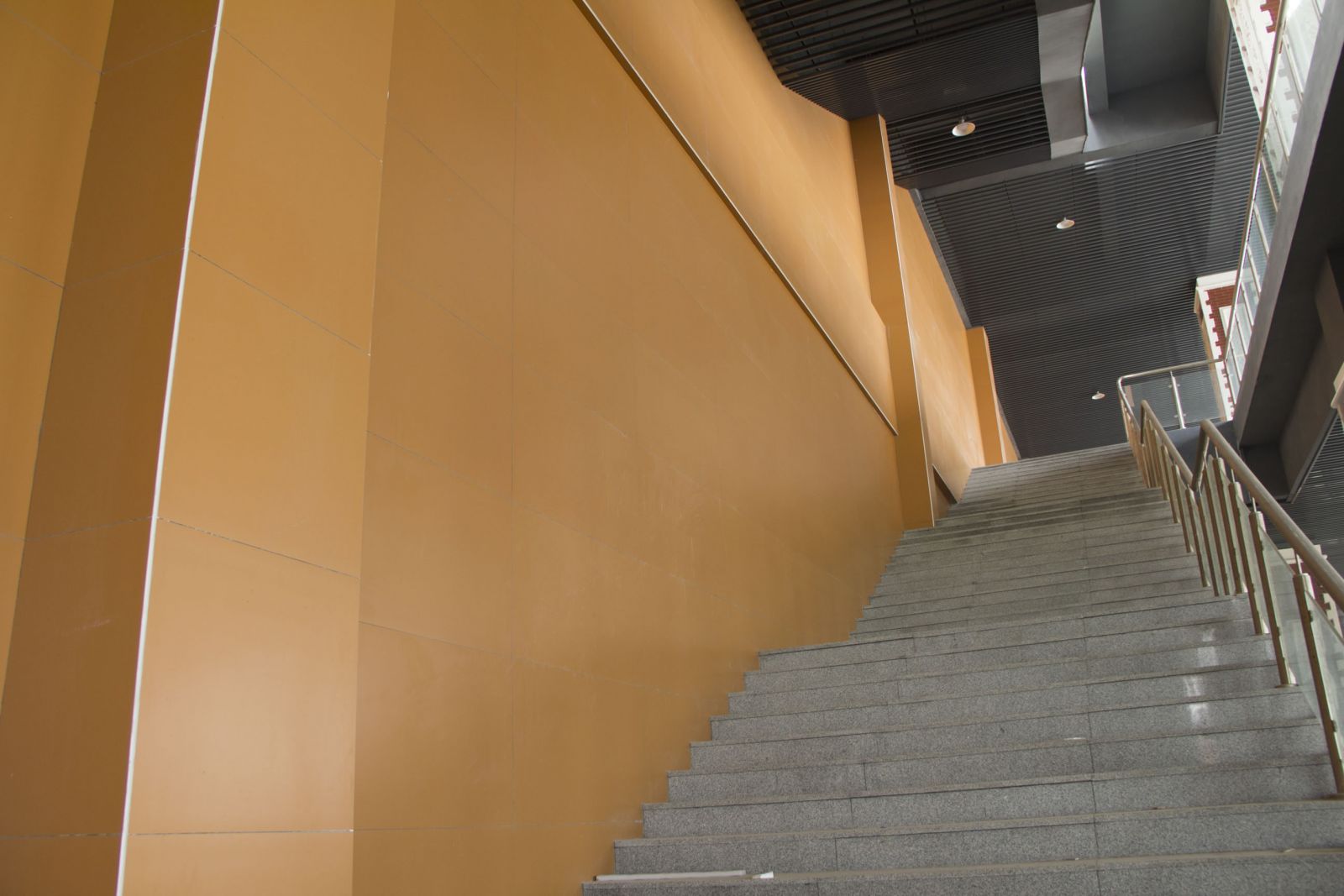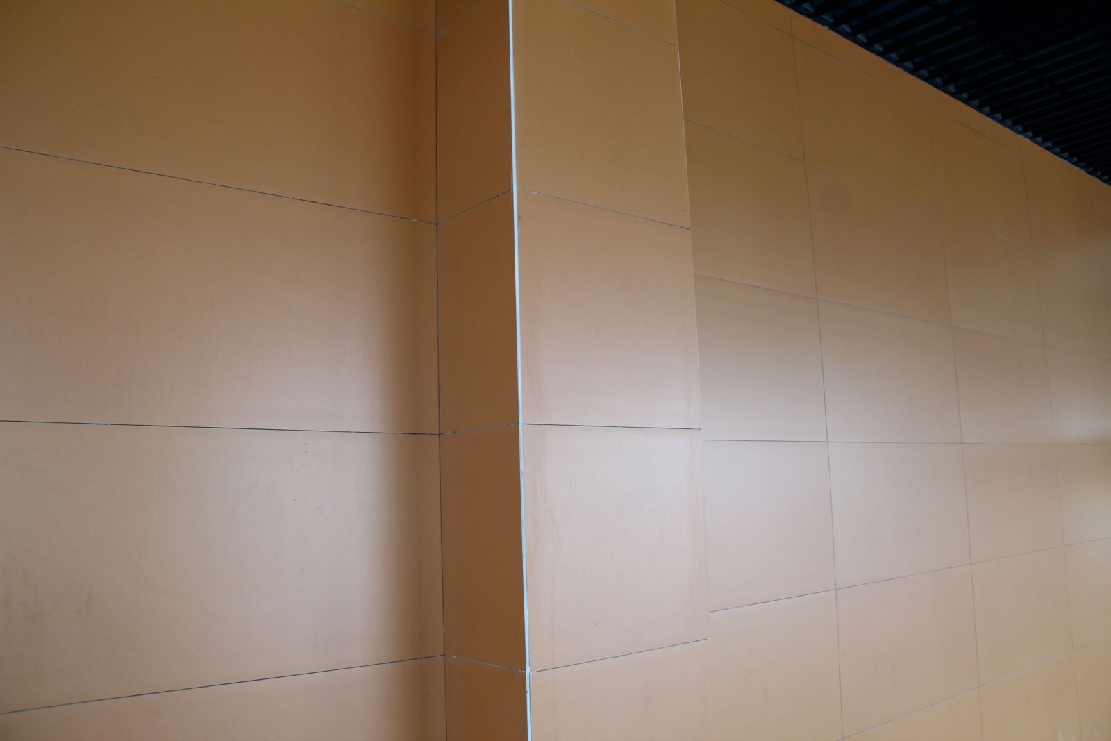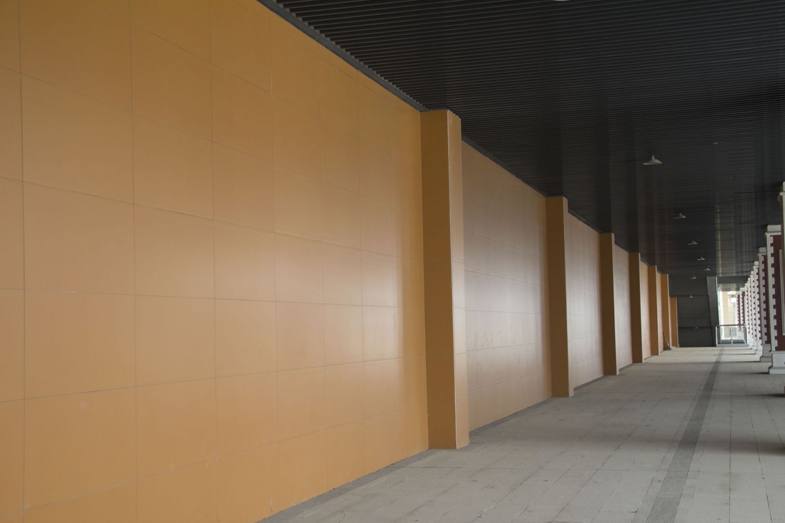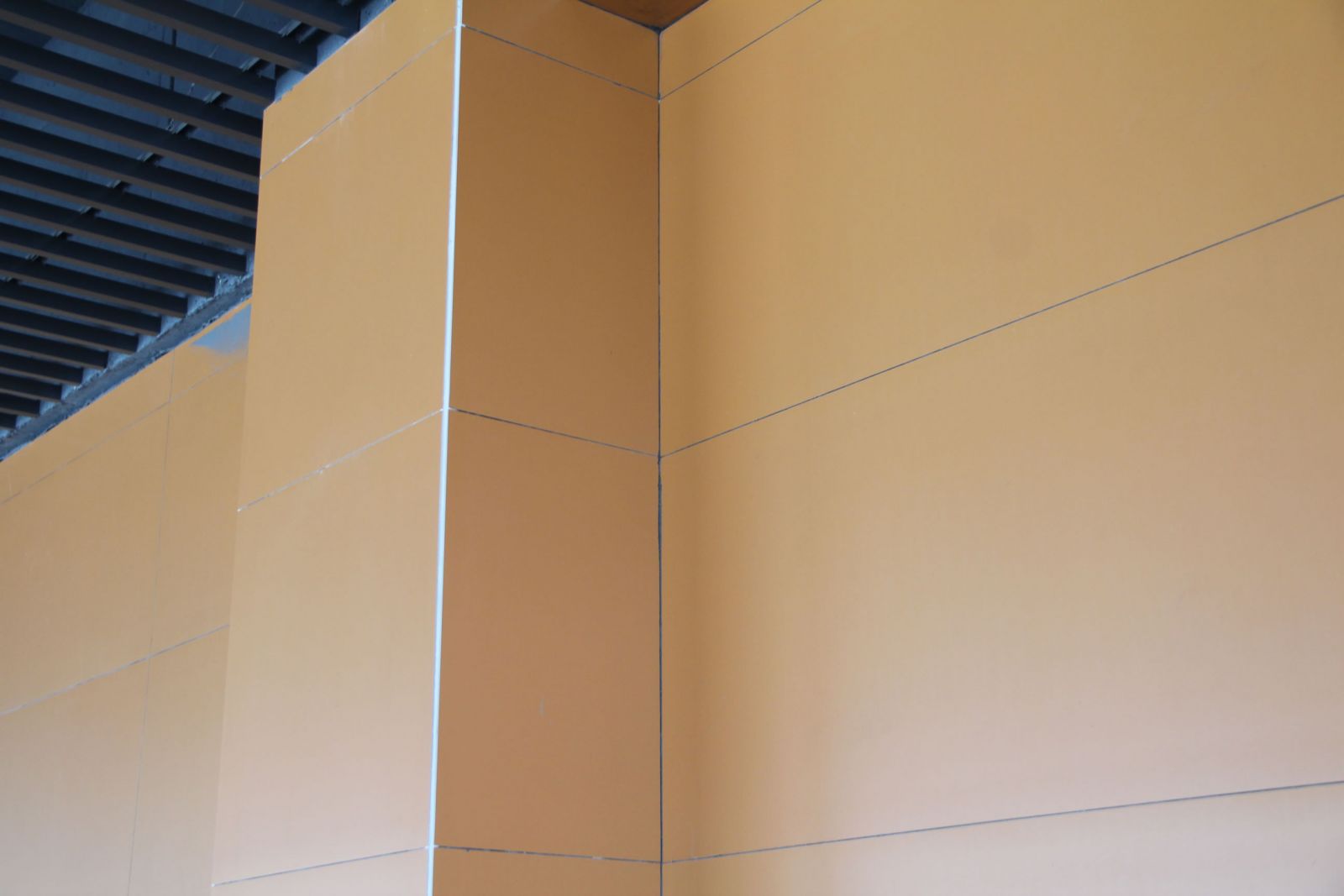 建筑立面使用600*1200橙黃色陶瓷薄板鋪貼裝飾,色澤均勻,典雅大氣。 陶瓷薄板不僅具有優(yōu)秀的裝飾效果,對墻體也可以起到很好的保護(hù)作用。 協(xié)進(jìn)陶瓷,值得您的信賴!