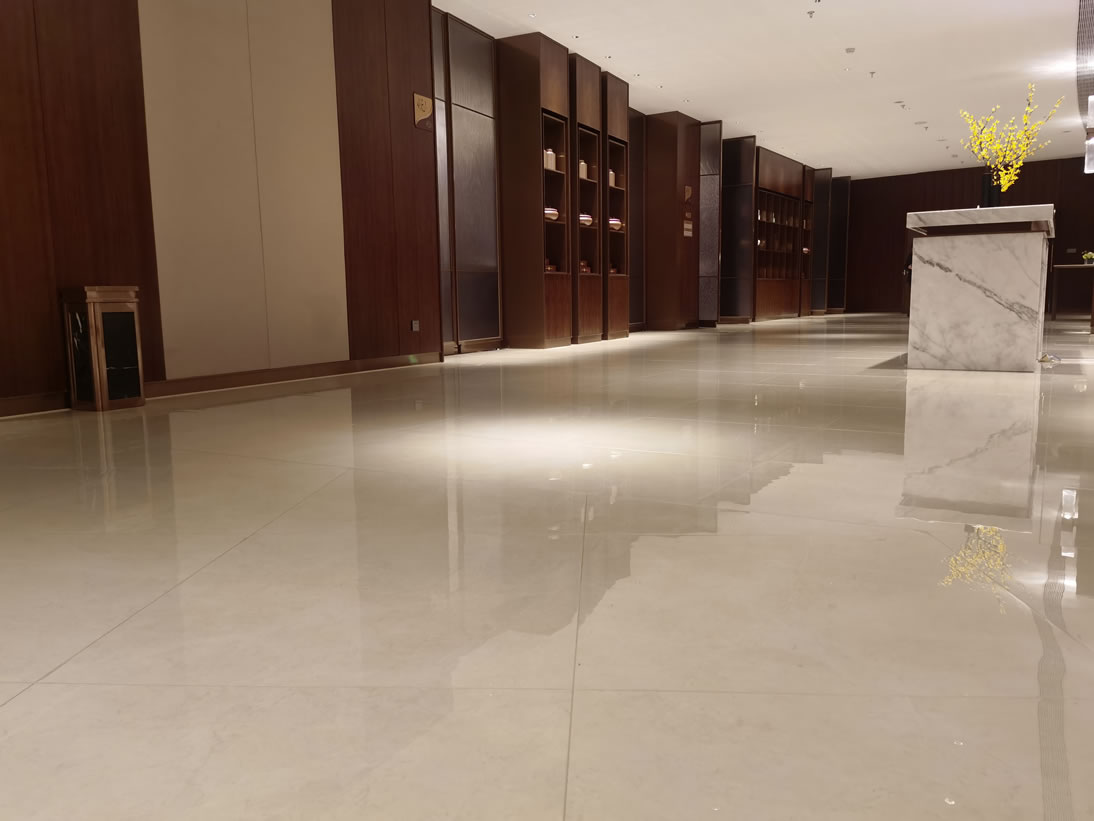 酒店大堂、餐廳、衛(wèi)生間等區(qū)域使用協(xié)進瓷磚鋪貼裝飾,效果高檔大氣。