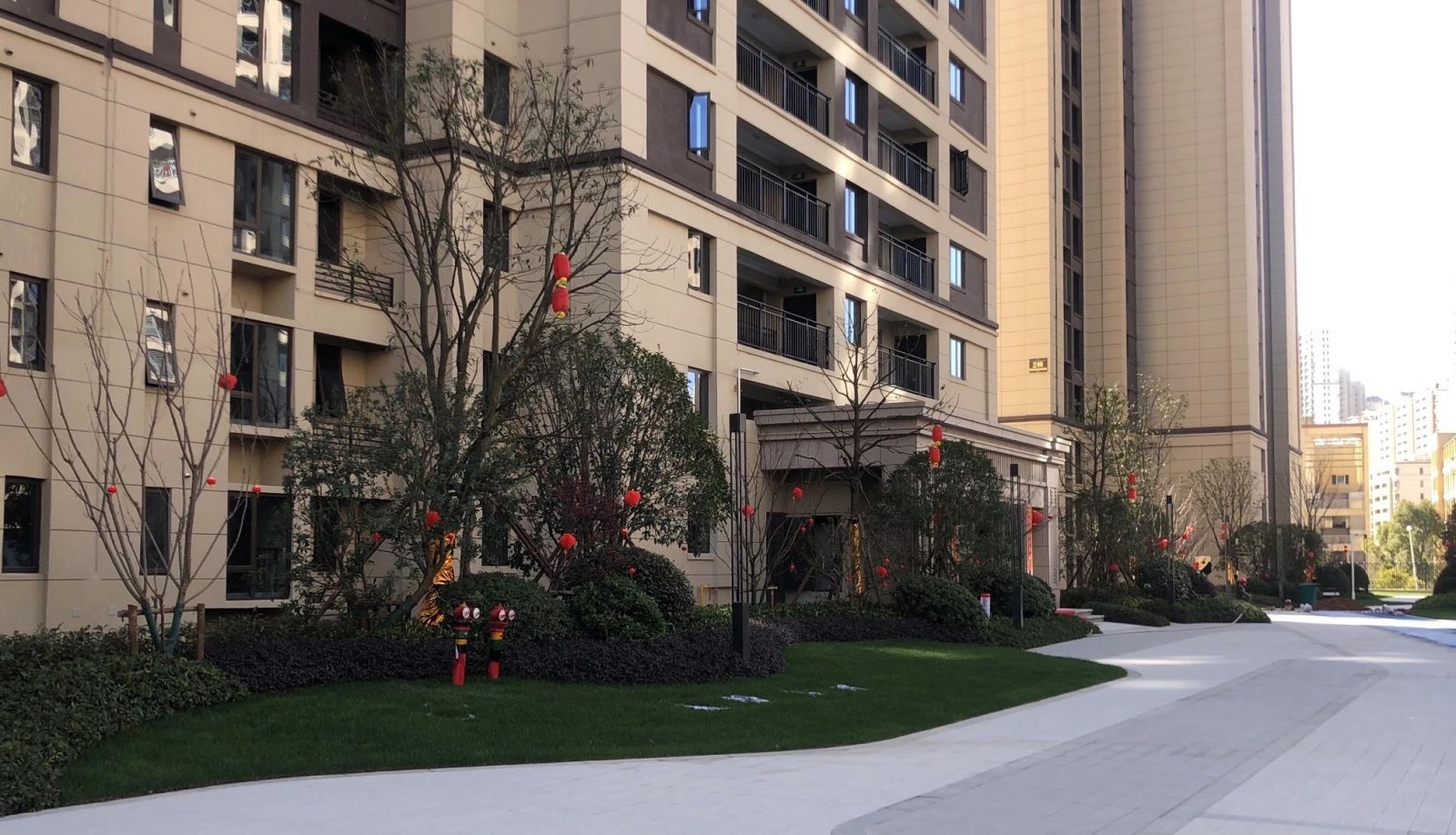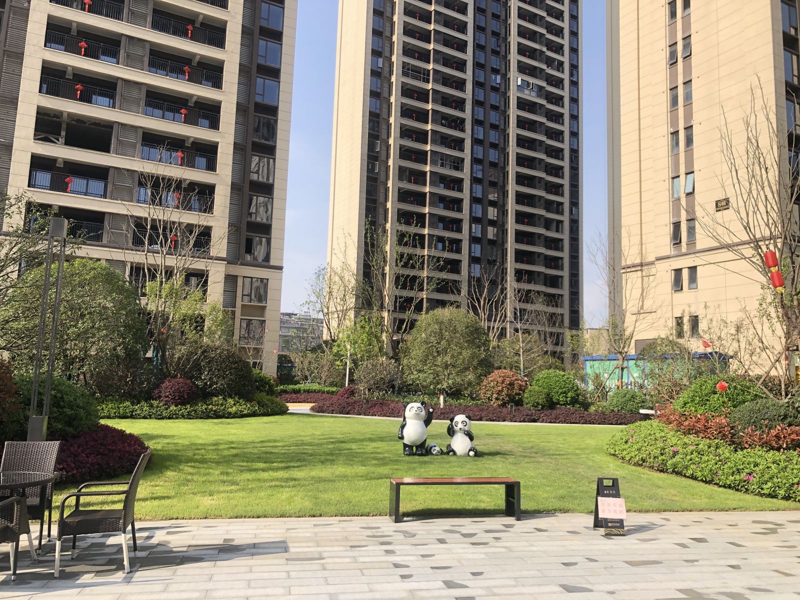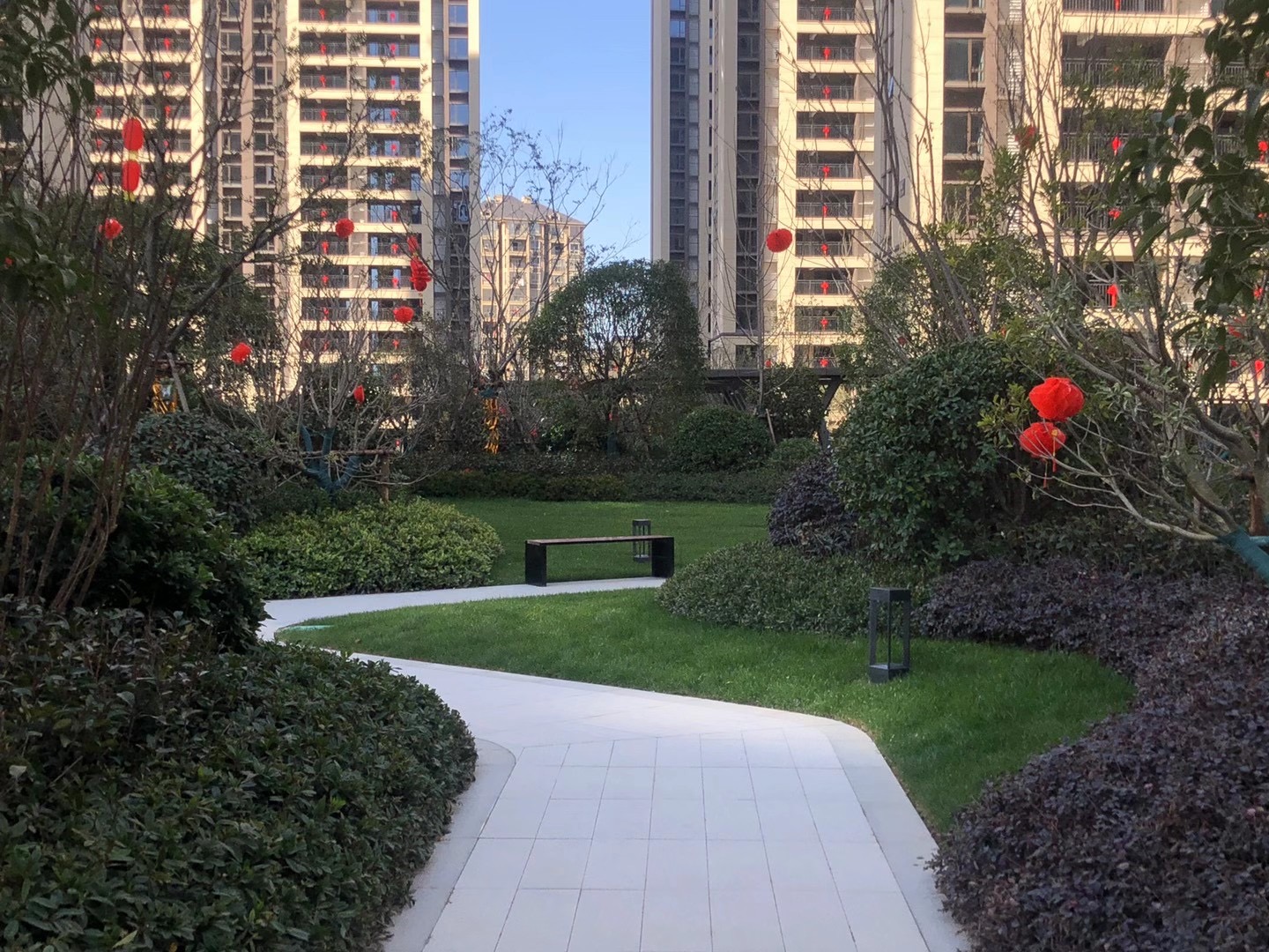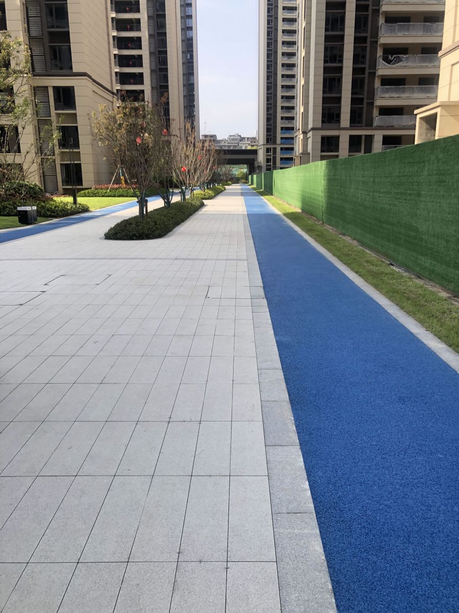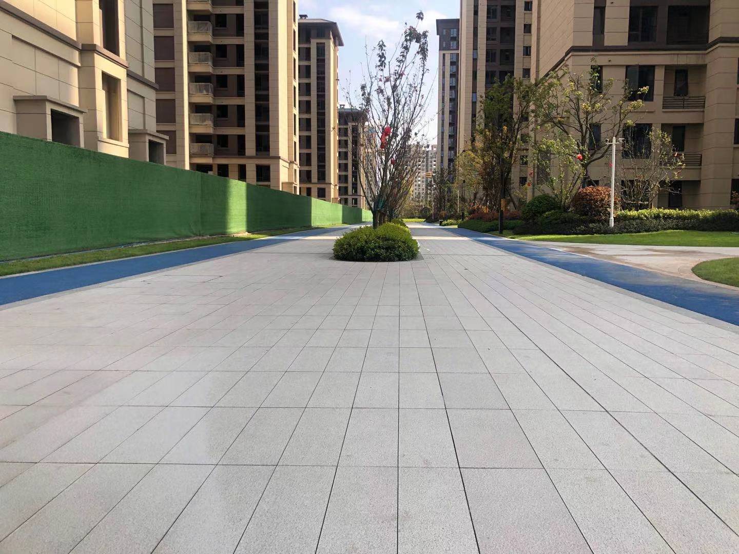 小區(qū)園林使用協(xié)進(jìn)200*600陶瓷地鋪石搭配鋪貼,顏色統(tǒng)一,效果簡約整潔。