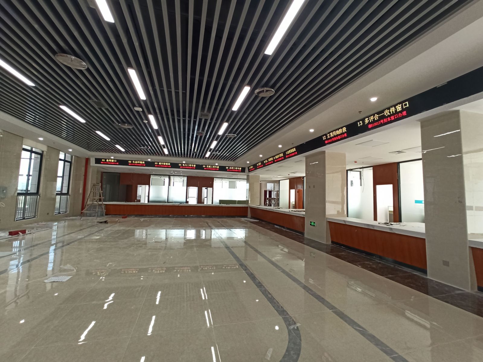 新中心大樓體形呈動感對稱的方正建筑形體,立面采用橫豎線條構圖;外墻采用豎向石材及落地窗裝飾。新中心按綠色建筑“二星級”標準建設,分中心區(qū)和配套服務區(qū),中心區(qū)主要為政務服務中心大樓;配套服務區(qū)建設入口廣場、停車場、綠化景觀等配套設施?!?nbsp; 新中心大樓入口處將設兩層挑高10米的高門廳,布置3層高的中庭空間,擁有良好的采光通風及開闊舒適的互動空間。大樓除了設5部電梯外,中庭大廳還設2部自動扶梯。1-5層分別布置為民生保障服務區(qū)和便民自助服務區(qū)、企業(yè)注冊服務區(qū)和投資建設服務區(qū)、公共資源交易服務區(qū)、辦公區(qū)、綜合配套區(qū)。