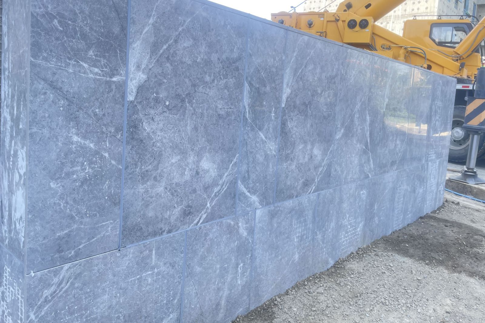 協(xié)進(jìn)厚板工程案例——烏魯木齊萬科天山府 該項(xiàng)目是一座綜合性住宅小區(qū),其園林設(shè)計(jì)采用了多種顏色的協(xié)進(jìn)厚板,呈現(xiàn)出豐富多彩的景觀效果。 其中,地面使用了浪花白和夜里雪、芝麻灰系列混和鋪貼,此外,在景墻的設(shè)計(jì)中,維納多米黃和愛馬仕灰色的景墻磚也被巧妙地應(yīng)用,使整個(gè)建筑物外觀更加美麗。