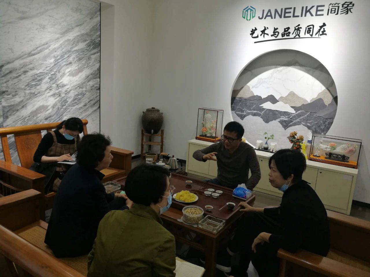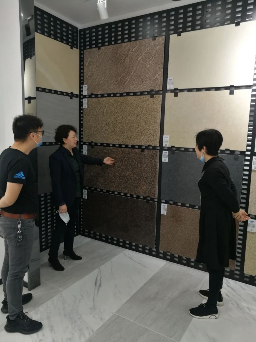 曾檢察長(zhǎng)一行在楊寶貴副董事長(zhǎng)的介紹下饒有興趣地參觀了產(chǎn)品展廳,對(duì)協(xié)進(jìn)研發(fā)生產(chǎn)的一系列大規(guī)格薄板、大板、陶瓷薄板復(fù)合保溫一體板、巖板等綠色節(jié)能新產(chǎn)品,以及3D噴墨等工藝技術(shù)在瓷磚產(chǎn)品上的運(yùn)用贊嘆不已,不時(shí)詢問(wèn)諸多產(chǎn)品在整體家裝領(lǐng)域的鋪貼使用效果。