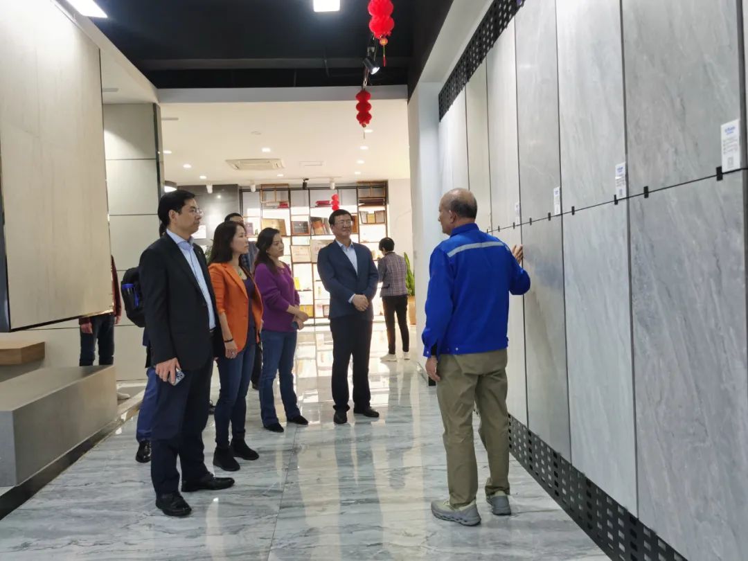 周會長一行在南安協(xié)進(jìn)公司董事長王家助的介紹下一邊了解企業(yè)30年來的發(fā)展歷程,一邊參觀產(chǎn)品展廳,對協(xié)進(jìn)陶瓷在大規(guī)格薄板、大板、陶瓷薄板復(fù)合保溫一體板、地鋪石等綠色節(jié)能新產(chǎn)品的研發(fā)生產(chǎn)深入了解。希望利用協(xié)會在建筑開發(fā)產(chǎn)業(yè)鏈上的優(yōu)勢和資源,通過此次的商務(wù)考察活動,尋求開拓加拿大和北美市場的合作。