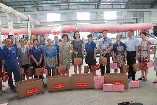 7月11日上午,南安市總工會(huì)、官橋鎮(zhèn)總工會(huì)領(lǐng)導(dǎo)蒞臨協(xié)進(jìn)公司,對(duì)一線(xiàn)員工表達(dá)了親切的關(guān)心和慰問(wèn),并特意送來(lái)一批防暑降溫食品和飲料慰問(wèn)全體員工,我們向各位領(lǐng)導(dǎo)表示感謝!并感謝黨和政府對(duì)我們的關(guān)心和對(duì)企業(yè)的支持!